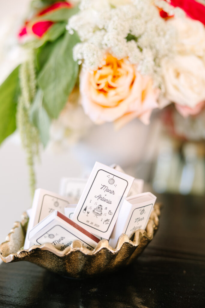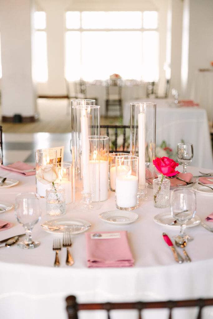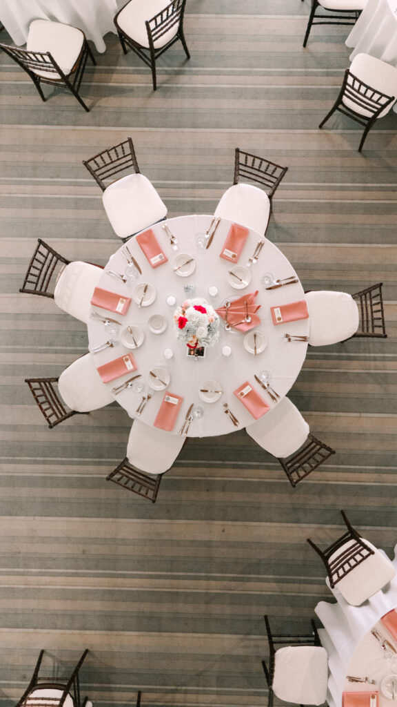 Soft shades of blush and rose ran throughout the day — from the guests dresses to the delicate floral arrangements that filled the reception space. The pink accents added just the right touch of romance while keeping the overall design clean and contemporary.